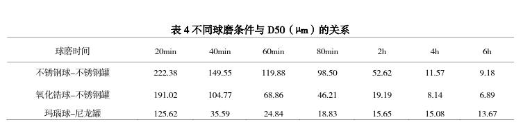 將蒸青片用 YXQM-4L 行星式球磨機(jī)分別采用不銹鋼球-不銹鋼罐、氧化鋯球-不銹鋼罐、瑪瑙球-尼龍罐進(jìn)行 20min、40min、60min、90min、2h、4h、6h 的球磨(料球比為 45g:493g,大中